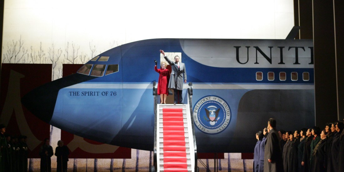 The composer John Adams manages to mine historical events into atypical and unexplored operatic material. His 2005 opera Doctor Atomic centered on physicist J. Robert Oppenheimer’s development of the atomic bomb and the eventual association with the Manhattan Project. With Nixon in China, Adams, along with librettist Alice Goodman, have chosen a specific event and created an important, however challenging, theatrical study in world politics. Lasting just only a few days, a visit by Richard Nixon to Beijing, China, for a meeting with Chairman Mao in February 1972 would eventually alter the course of international relations between the U.S. and China long afterwards. Such an interesting and well-publicized meeting between the two leaders automatically incites theatrical fodder, no less for an opera.