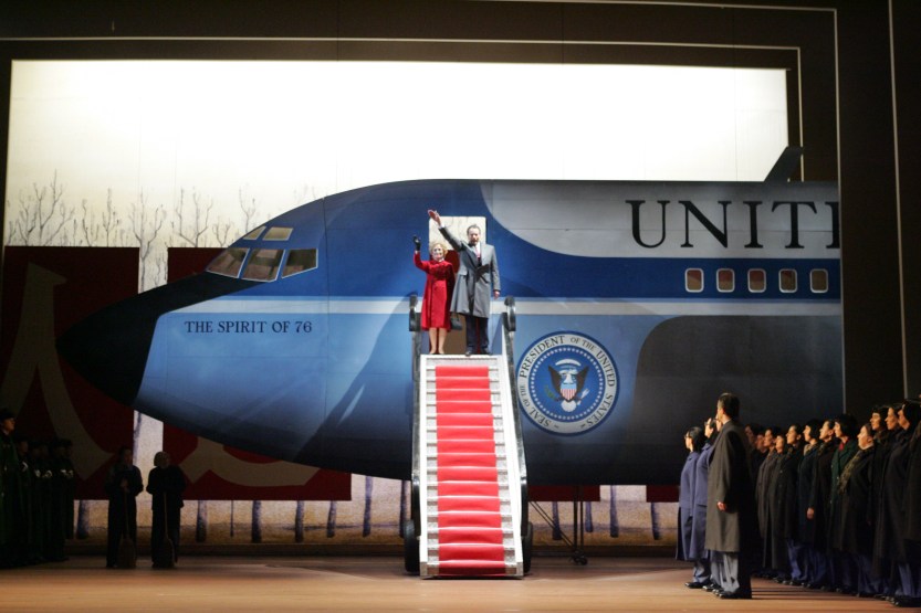 Patience is a virtue while trying to get through the first act. The opera opens with a group of service contingents awaiting the arrival of the plane carrying President Nixon, the First Lady and Henry Kissinger. When we first see the emlematic shape of The Spirit of ’76 descend upon the stage, it is an iconic image, a moment that director Peter Sellars knows how to drum up for maximum potency. Many stretches of longstanding glances and poses add dramatic weight and tension, and after so long, it becomes tedious. Adams’ score plods along serviceably, but it is Goodman’s libretto that becomes questionable. She has the characters repeat their dialogue in a repetitive refrain that you wonder if it’s all just filler.